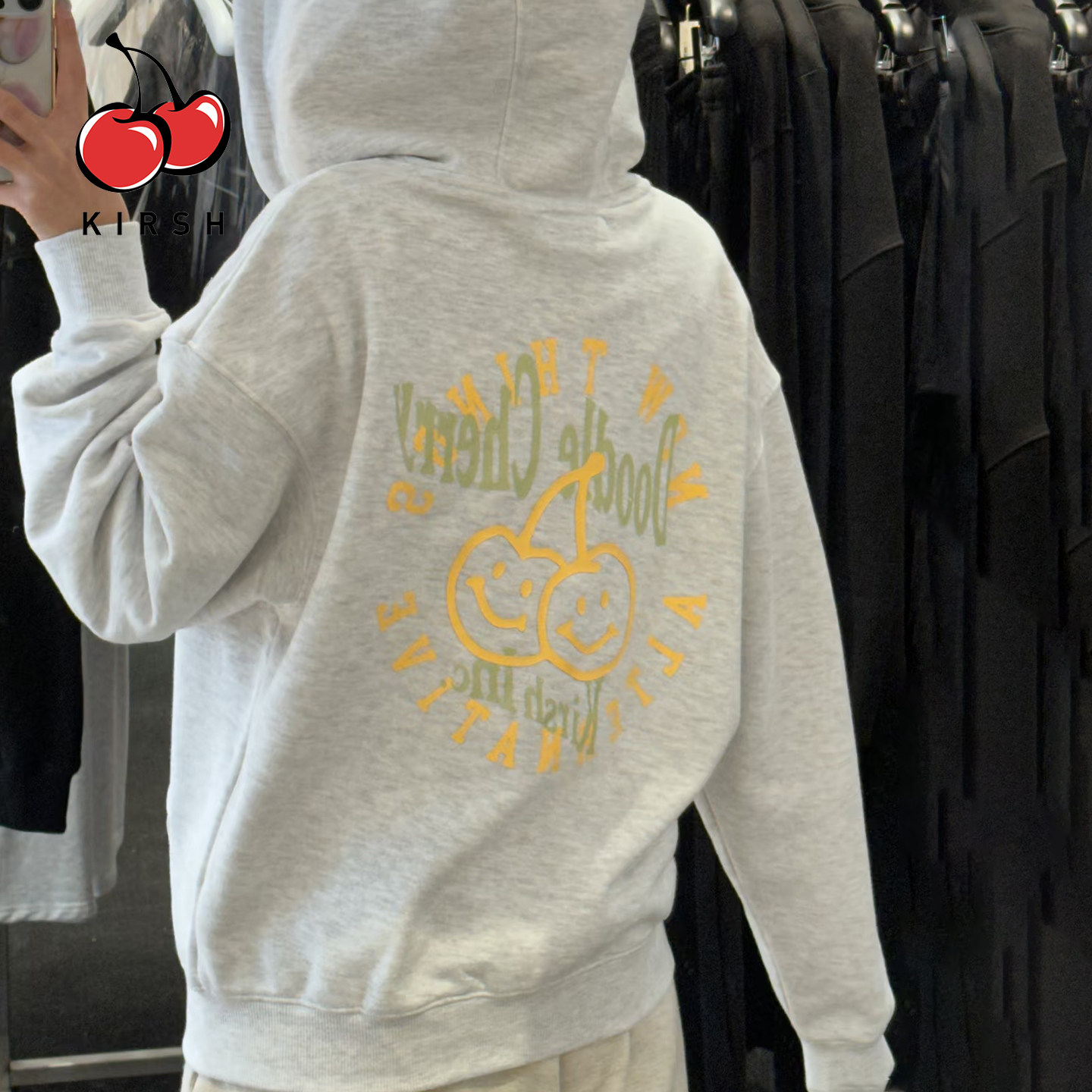 kirsh大樱桃印花连帽卫衣女上衣2025宽松慵懒感休闲外套开衫上衣
