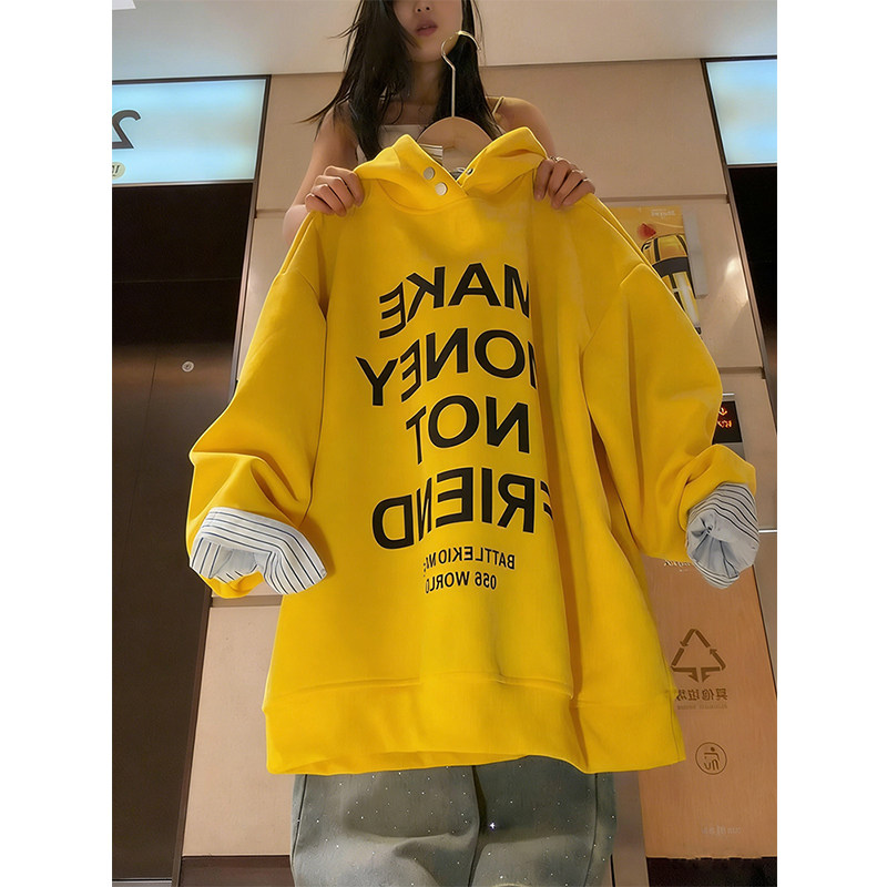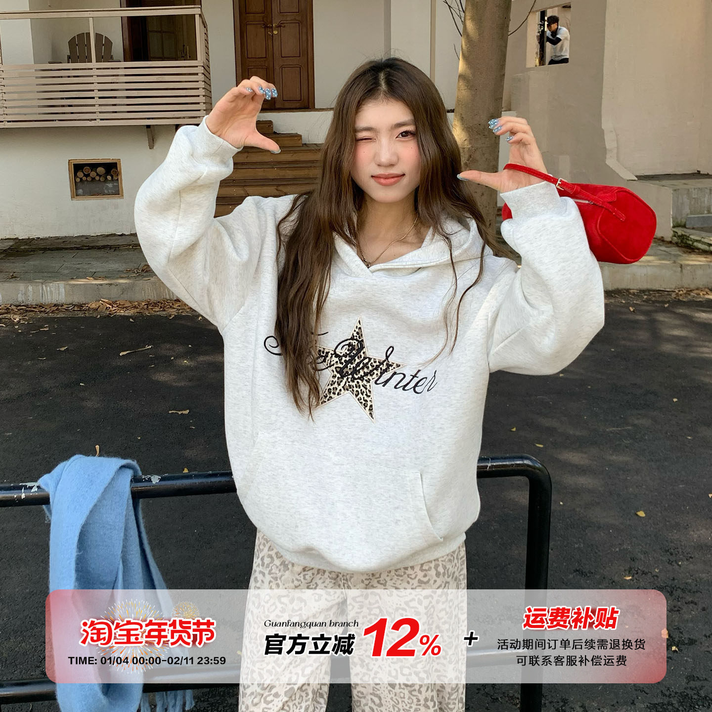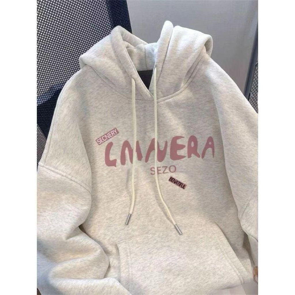 美式潮牌字母印花连帽卫衣女2025秋冬新款宽松休闲慵懒风加绒外套
