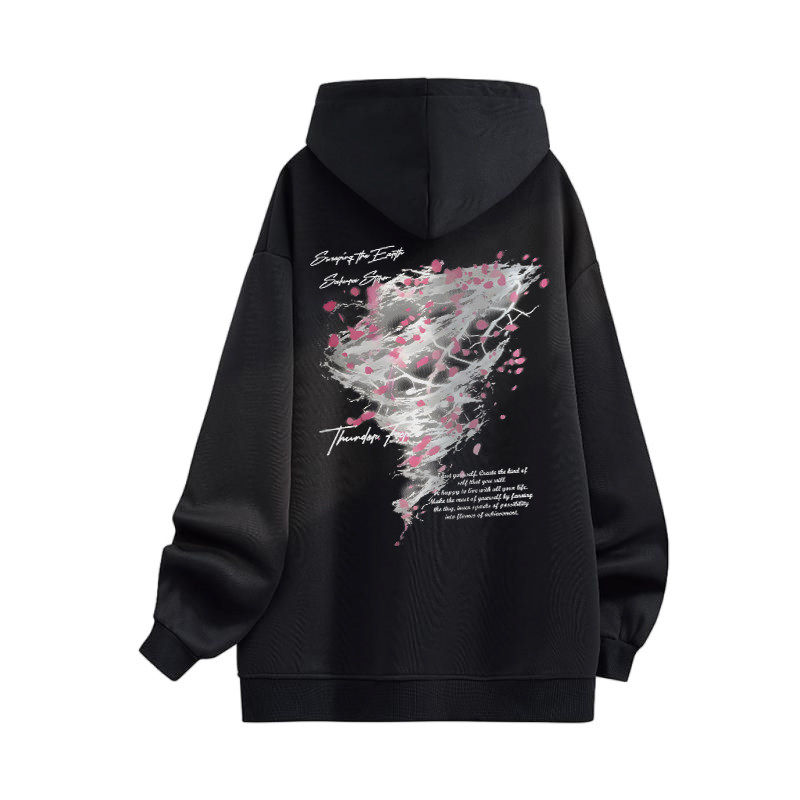 查尔斯桃心美式连帽卫衣男女冬季花卉蝴蝶印花加厚保暖情侣上衣潮