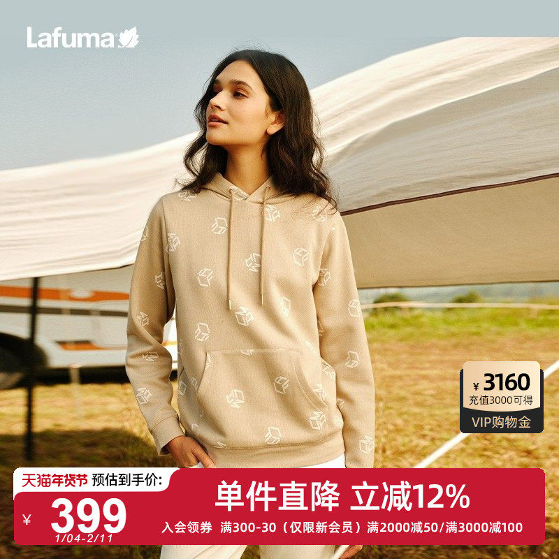 法国LAFUMA乐飞叶户外通勤印花连帽卫衣女休闲运动套头上衣