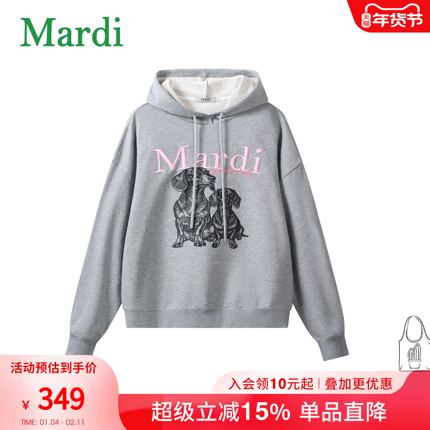 MARDI卡通小狗印花连帽卫衣女士秋季新款休闲百搭时尚松弛感上衣