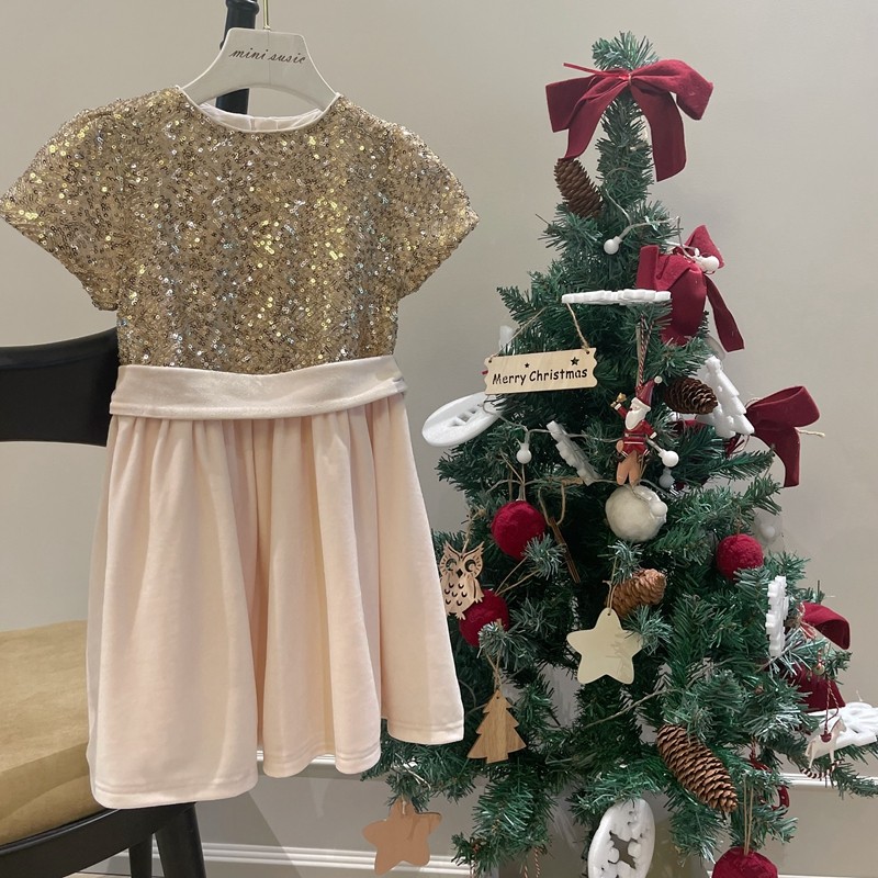 RBIGX瑞比克秋季新款生日宴会礼服连衣裙烫金丝绒网纱拼接公主裙