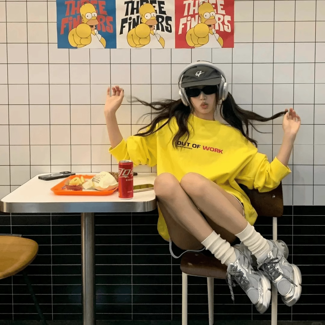 ENJOYME 韩版宽松字母印花卫衣女黄色套头长袖休闲上衣减龄慵懒风