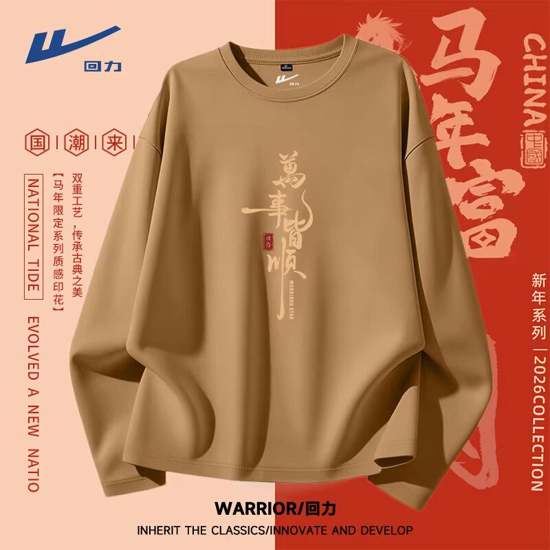 回力男士卫衣2026新款春季纯棉亲肤圆领青少年黄色长袖套头衫男款