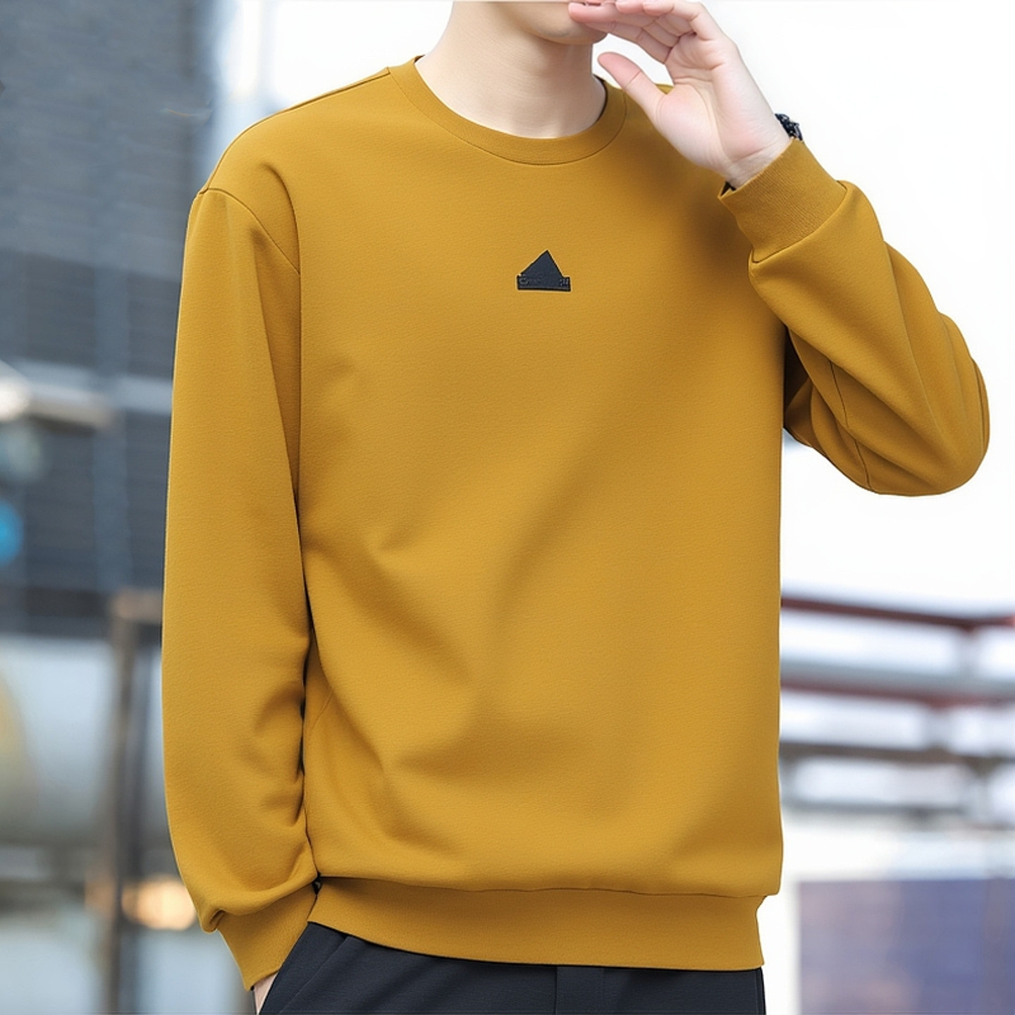 新品长绒棉套头男士卫衣宽松丝滑不变形黄色透气圆领长袖T恤百搭