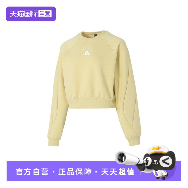 【自营】adidas阿迪达斯圆领套头衫女浅黄色简约短款卫衣 KC5902