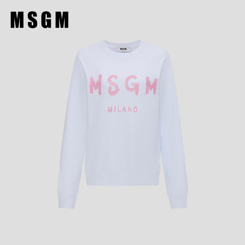 MSGM女士美式彩绘徽标印花纯棉圆领套头休闲卫衣长袖黄色白色黑色