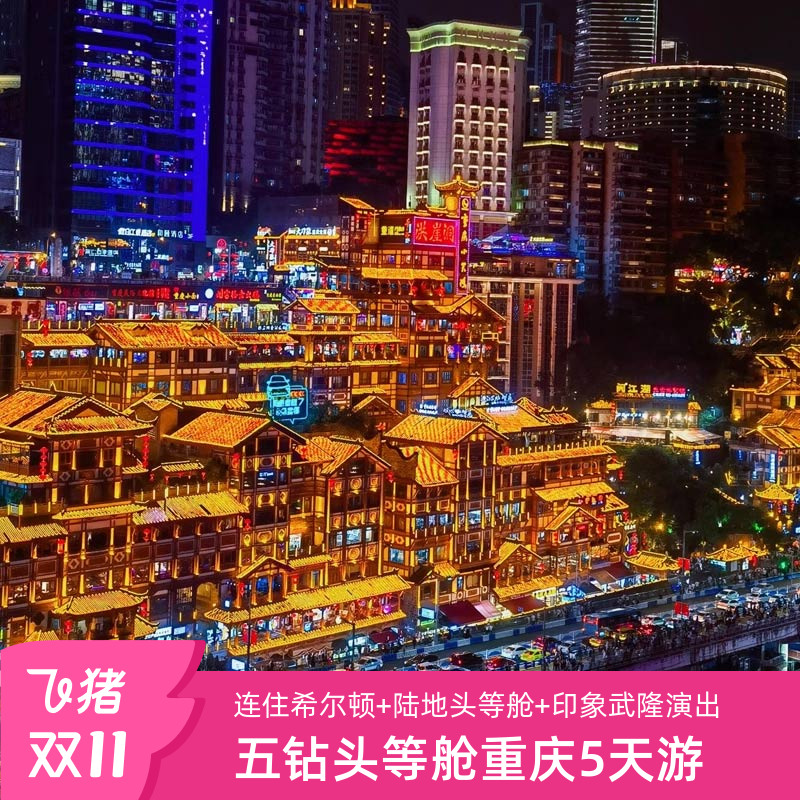 上海飞重庆旅游5天4晚自由行往返机票酒店洪崖洞解放碑春秋旅游