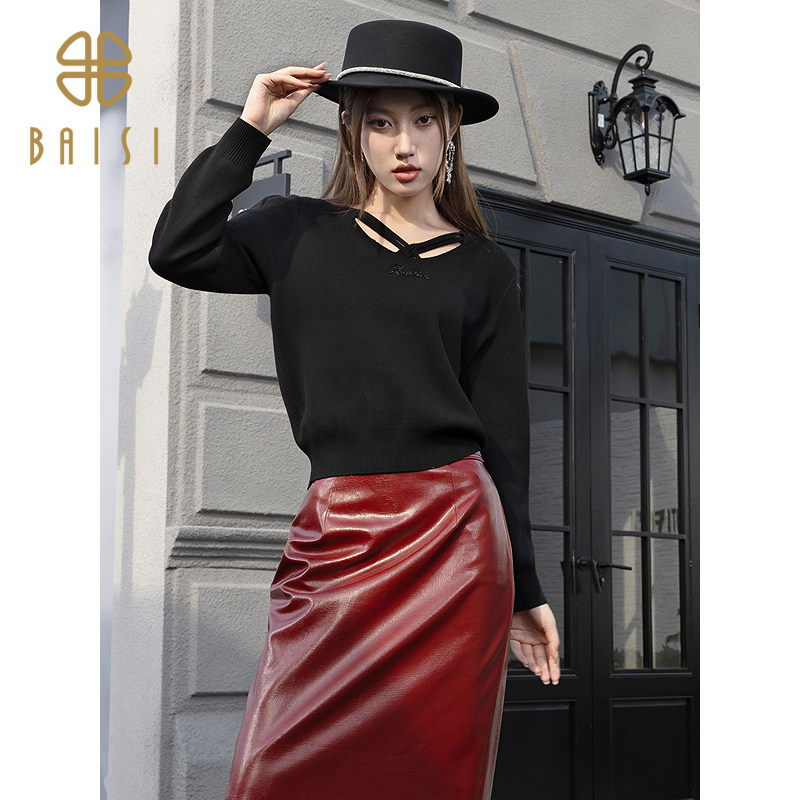 2025冬季新品百丝温柔女性魅力保暖长袖上衣韩系舒适V领针织衫女