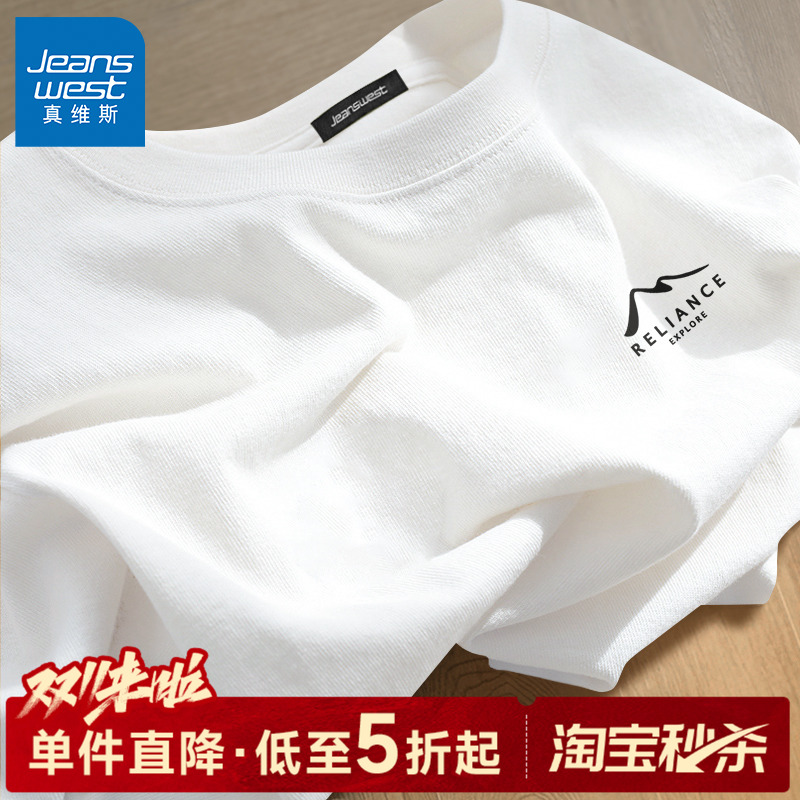 GV真维斯白色长袖t恤男秋季2025新款圆领秋衣男士纯棉宽松打底衫A