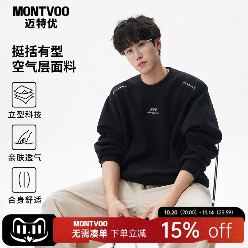 迈特优美式重磅圆领卫衣男2025新款t恤男宽松潮上衣长袖加绒外套