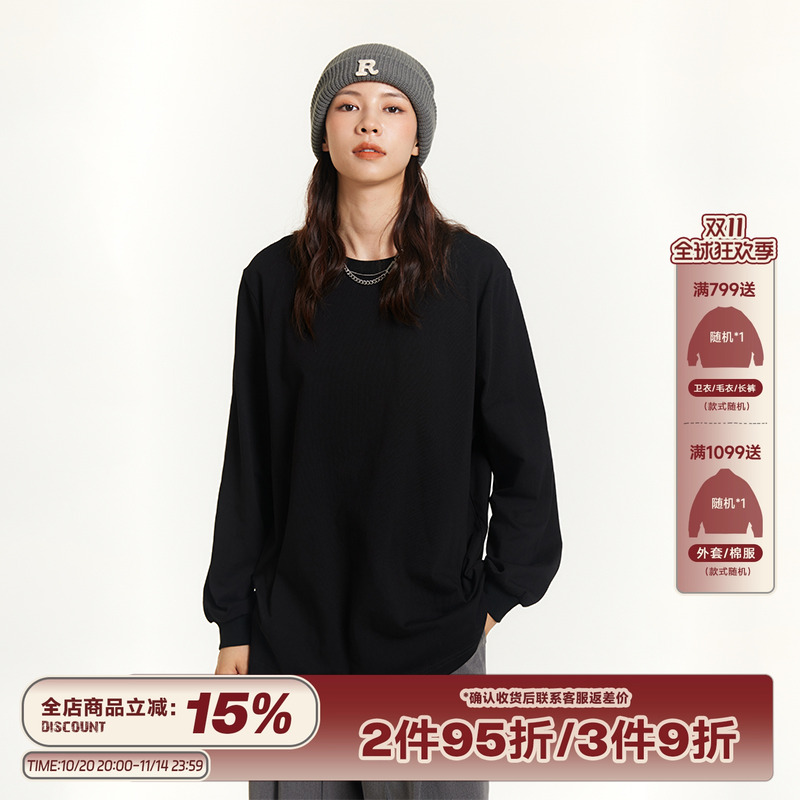 HM男装女装T恤秋季时尚圆领柔软棉质宽松长袖上衣打底衫1029317