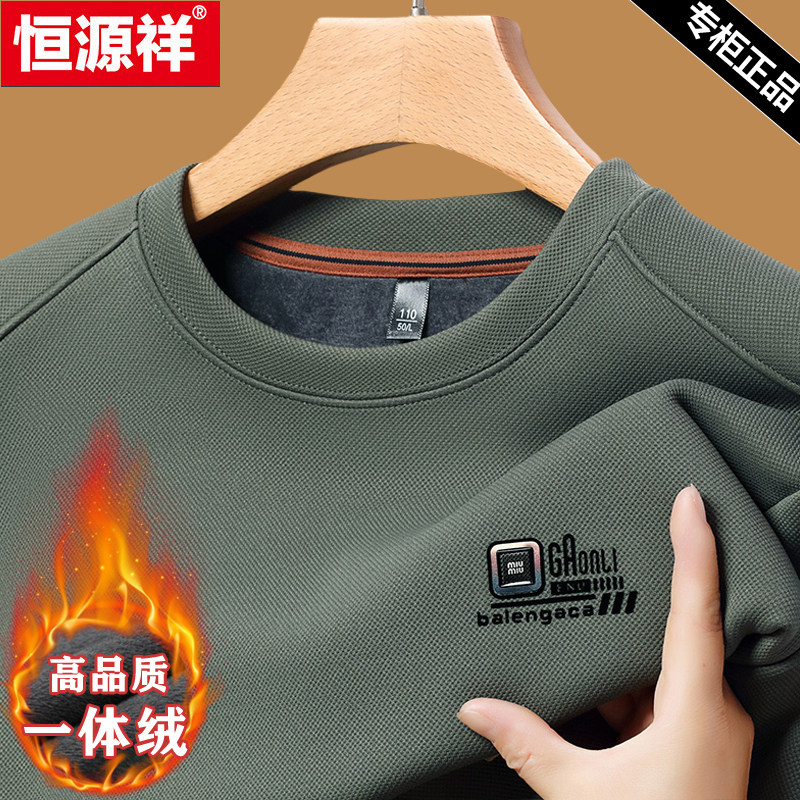 恒源祥加绒卫衣男冬季加厚冬装圆领内搭保暖套头男士上衣服打底衫