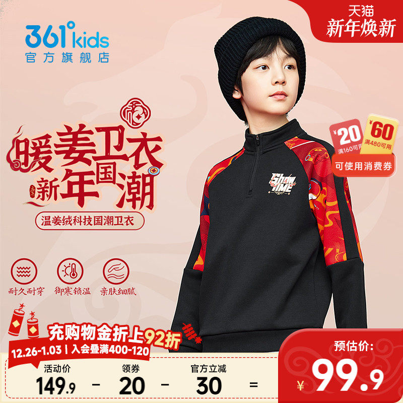 361童装男童加绒加厚套头卫衣2025秋冬马年运动红色保暖休闲上衣