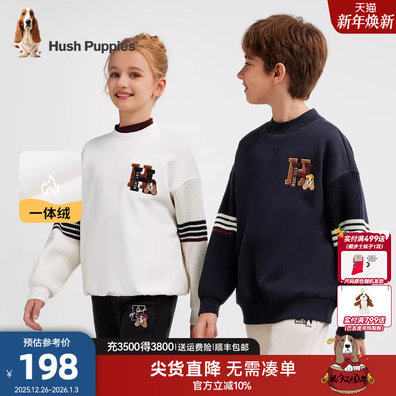 暇步士童装儿童加绒卫衣男童秋冬新款女童宝宝宽松休闲加厚套头衫