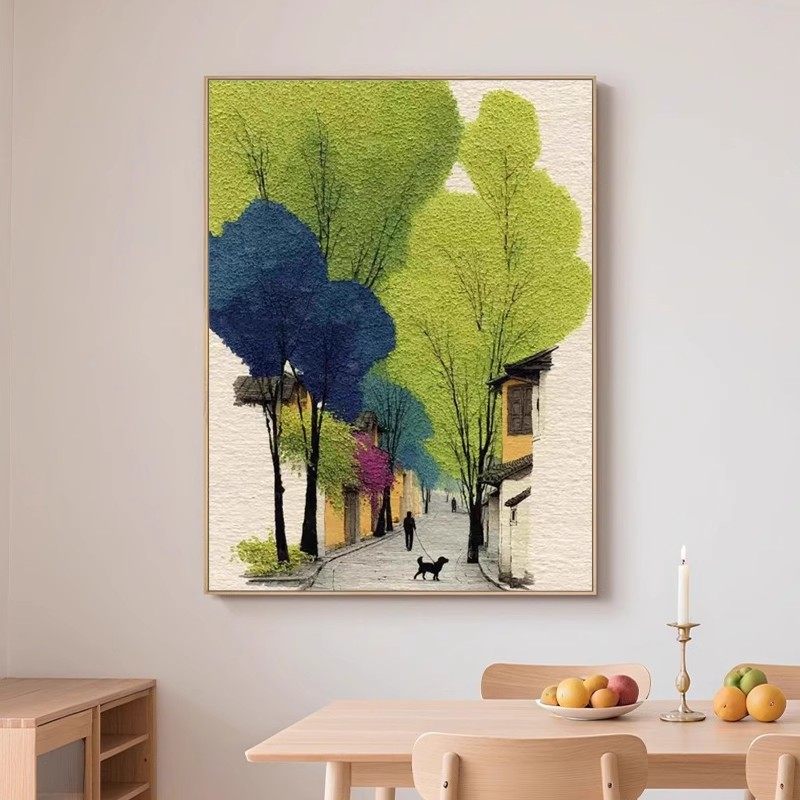 现代简约森林大树客厅装饰画办公室绿色树木餐厅饭桌壁画风景挂画