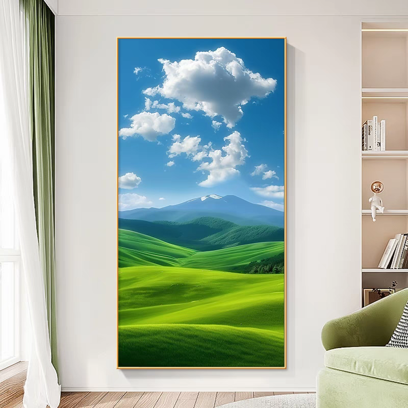 草原风景现代简约入户玄关装饰画正对门竖版客厅走廊过道墙壁挂画