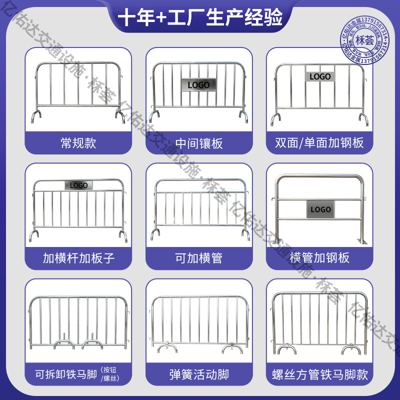 不锈钢铁马护栏移动临时围栏道路活动围栏地铁隔离栏商场隔离铁马