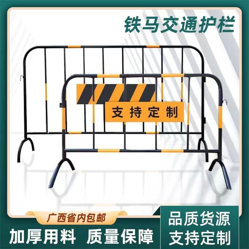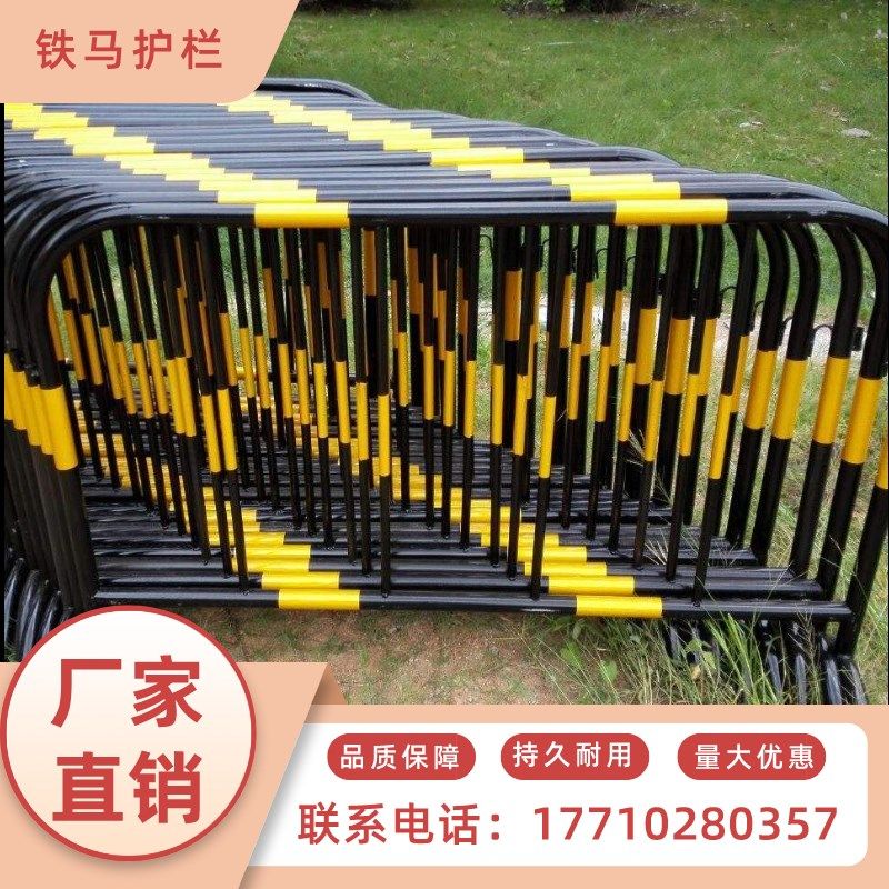 黄黑铁马护栏道路施工隔离围栏马路可移动防撞路拦201不锈钢围栏