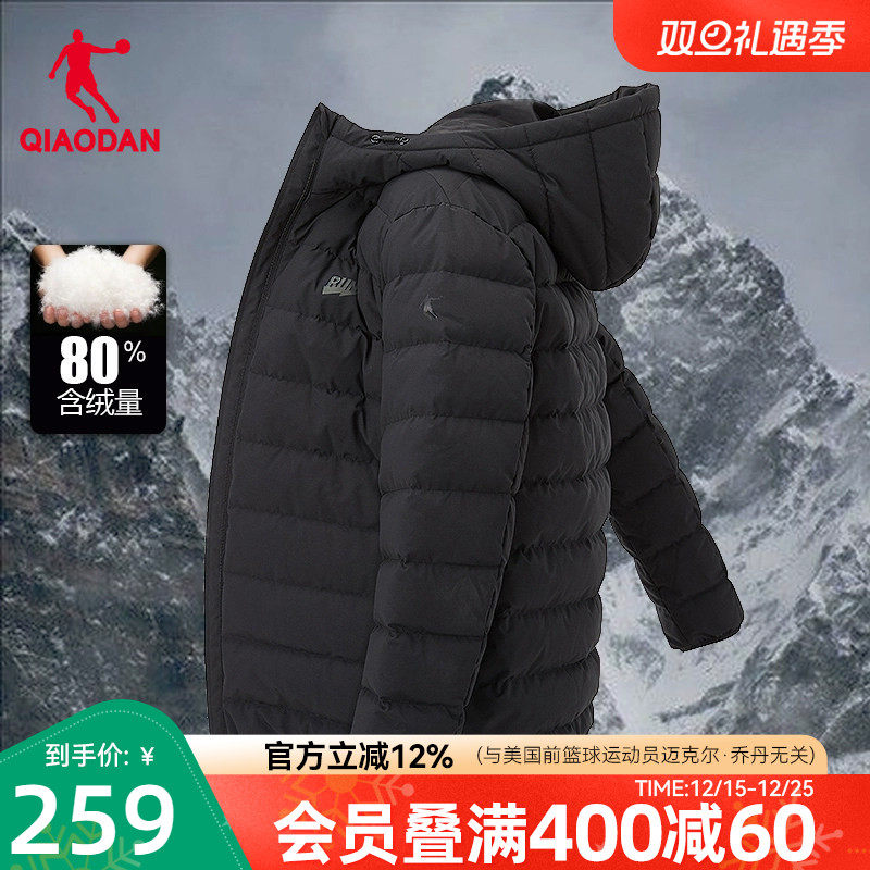 乔丹防风连帽排骨羽绒服男士新款保暖棉服防泼水防寒短款黑色外套