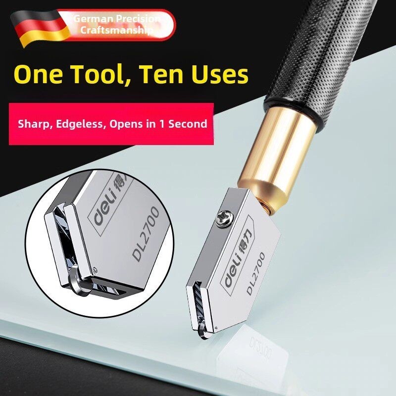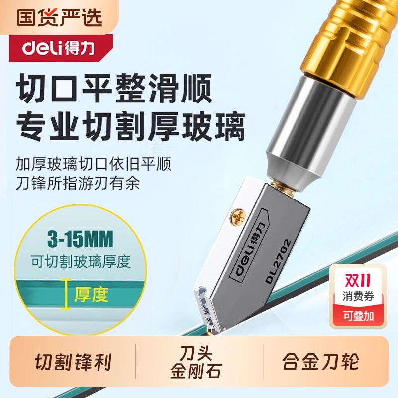 得力玻璃刀金刚石划厚玻璃专用刀家用地瓷砖切割神器划刀头开界器