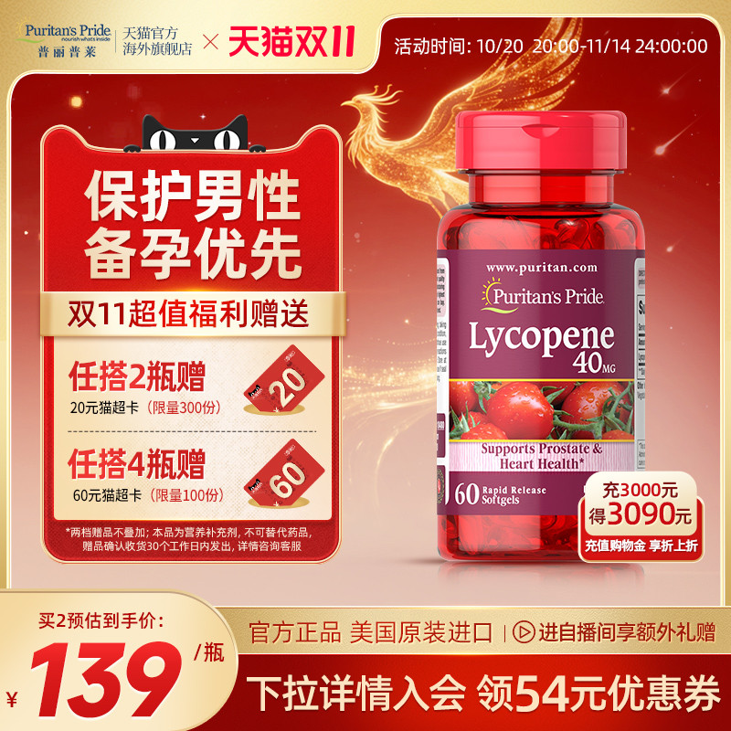 普丽普莱男士番茄红素官方旗舰店40mg*2瓶美国原装进口男性保健品