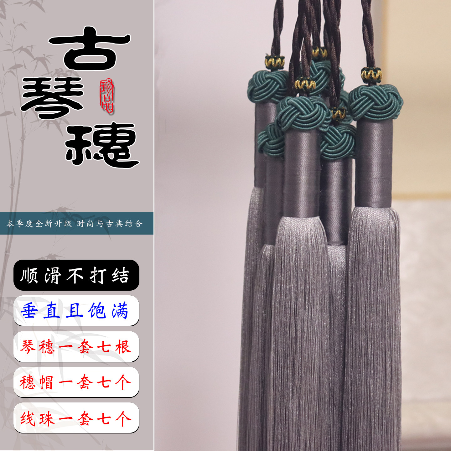 真丝古琴琴穗 加厚古琴穗 多色选 七弦琴古琴流苏 垂直顺滑琴穗