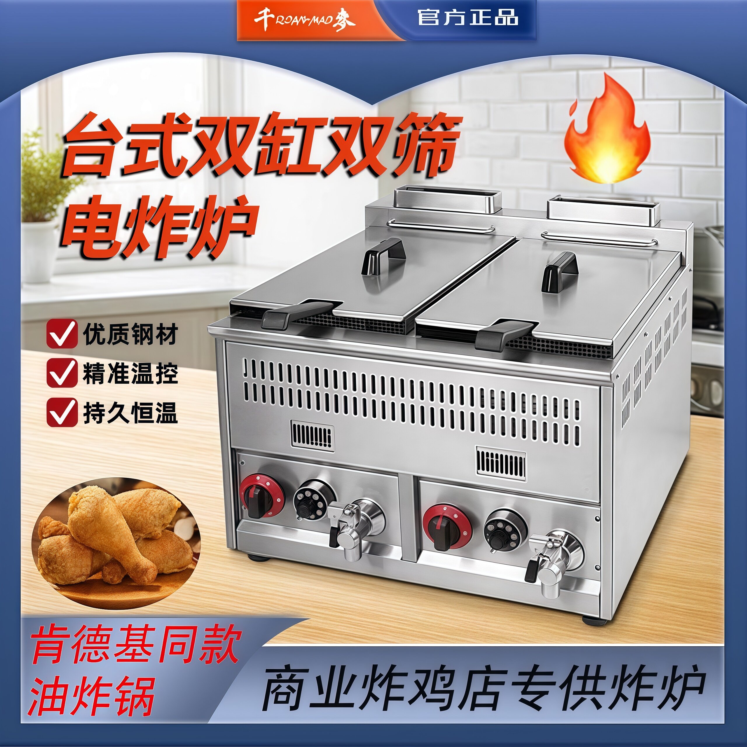 猛世双缸电煤气油炸锅商用燃气炸鸡炸串油条机立式电炸炉摆摊设备