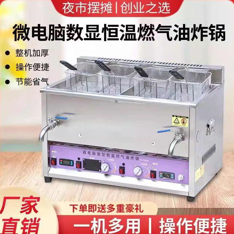 商用炸锅摆摊煤气双温燃气炸油条鸡锁骨全自动恒温油炸锅熄火保护