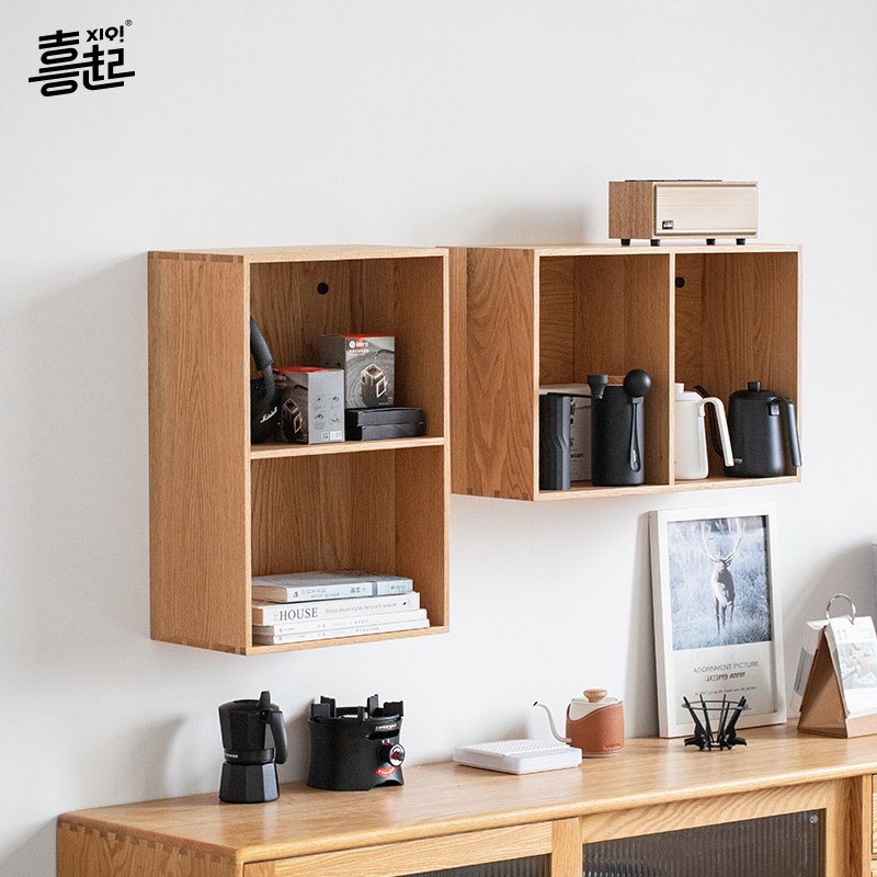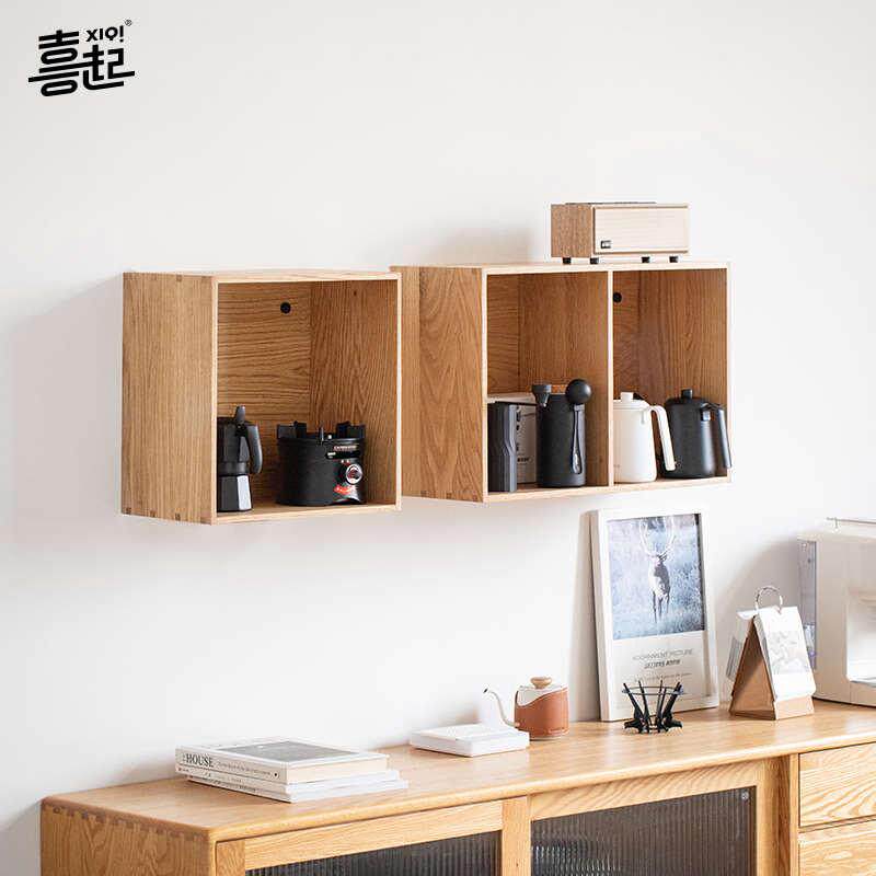 白橡木实木壁挂式书架 墙上组合格架置物架 挂墙储物架吊柜书柜