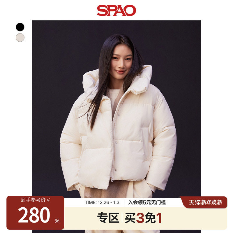 SPAO韩国同款冬季女士气质休闲连帽纯色短款棉服保暖面包服外套