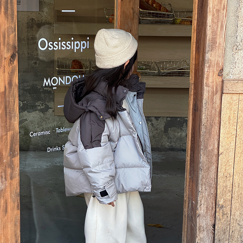 韩国童装儿童拼色羽绒服男童女童宝宝短款加厚面包服白鸭绒冬装潮