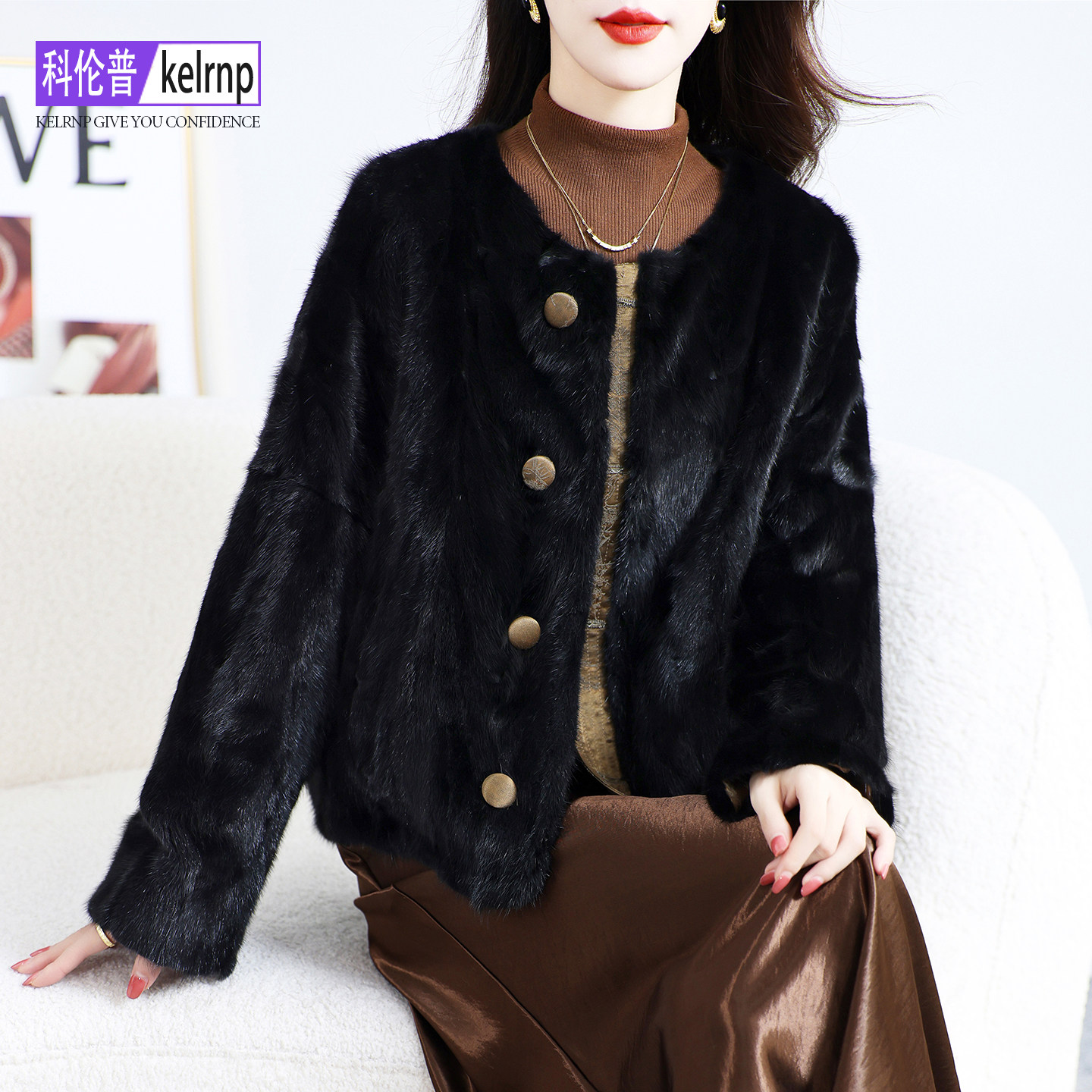 新款水貂绒环保皮草貂皮大衣皮毛一体V领短款年轻秋冬毛毛外套女