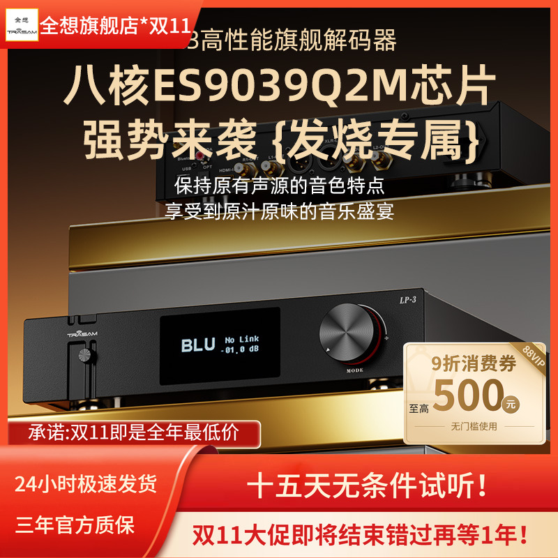 全想LP3蓝牙解码器hifi发烧级DAC音频8核9039q2m高音质解码器5.4