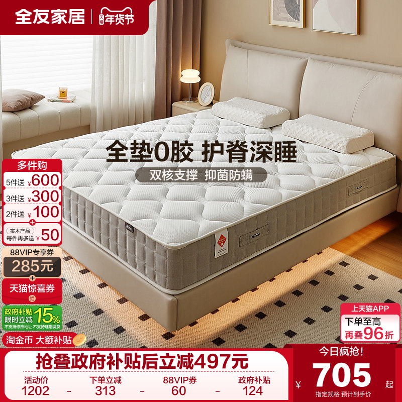 政府补贴全友家居弹簧床垫卧室家用双人护腰护脊软硬两用椰棕床垫