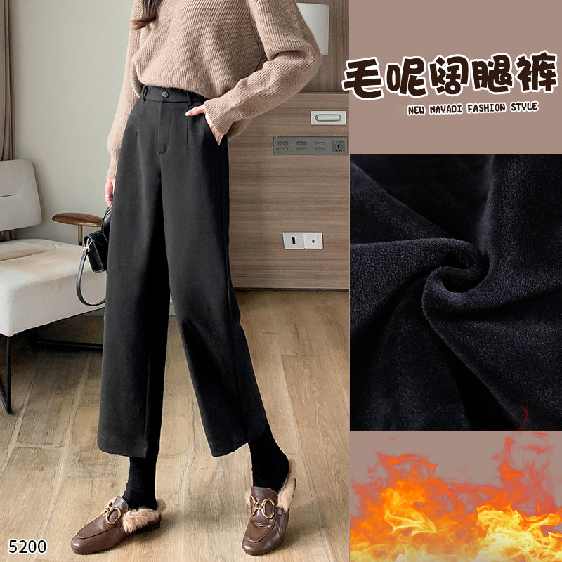 秋冬新九分阔腿裤大脚直筒裤子宽松高腰裙裤羊毛呢子毛呢女厚加绒