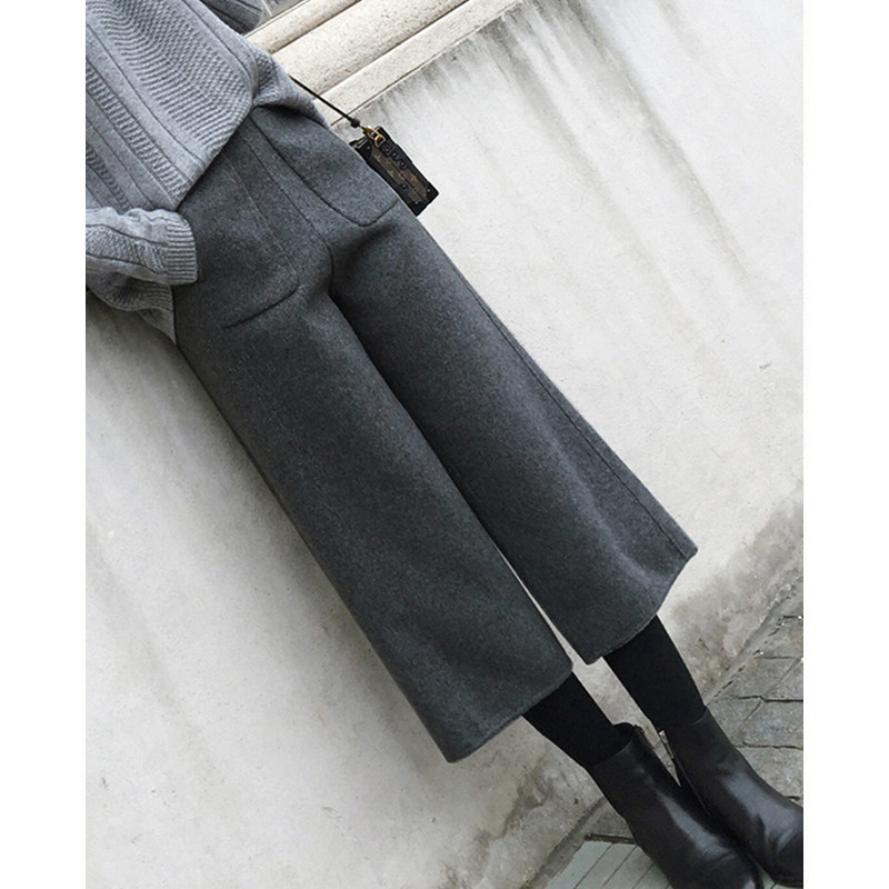 - 毛呢阔腿裤九分女冬 韩版 高腰