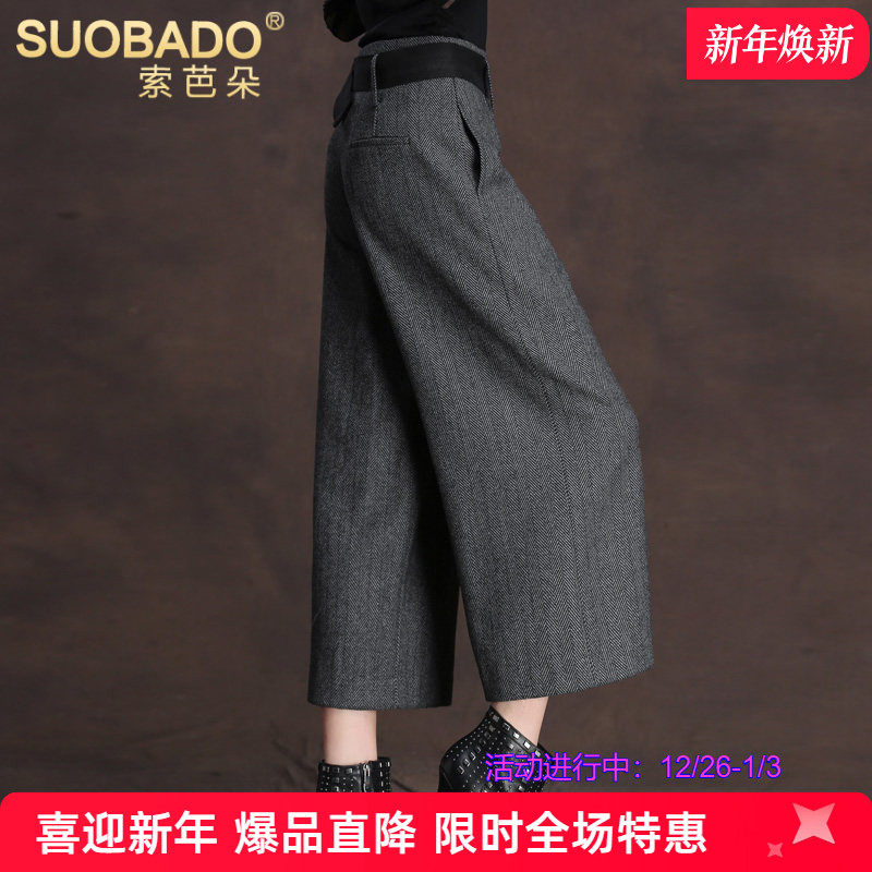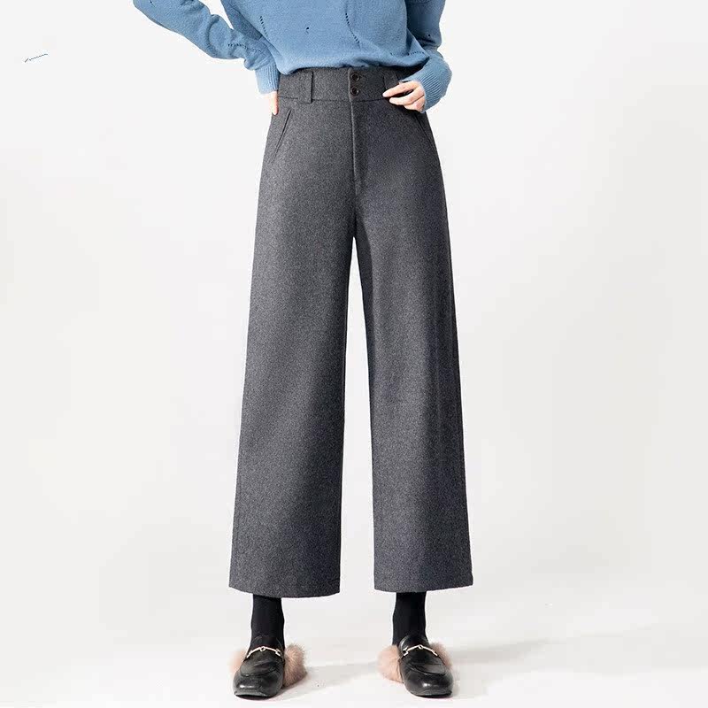 毛呢阔腿裤女秋冬九分裤[第1名]