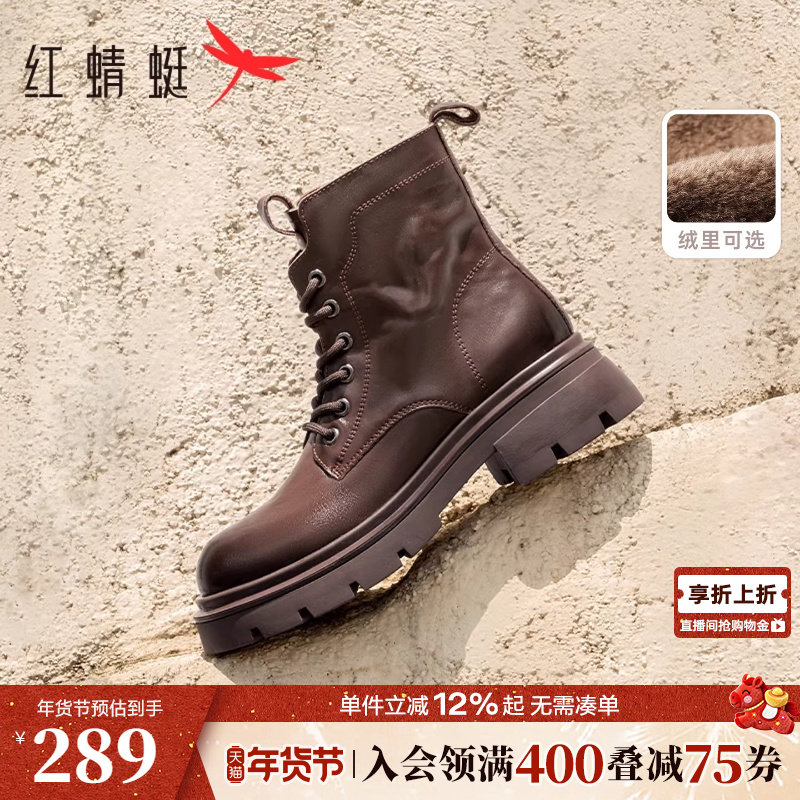 红蜻蜓官方正品马丁靴女新款英伦风秋冬季厚底增高短靴真皮靴子女
