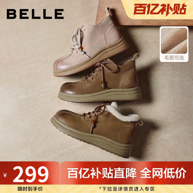 百丽女靴子英伦风厚底马丁靴冬款加绒棉鞋保暖休闲短靴E5D2DDD5