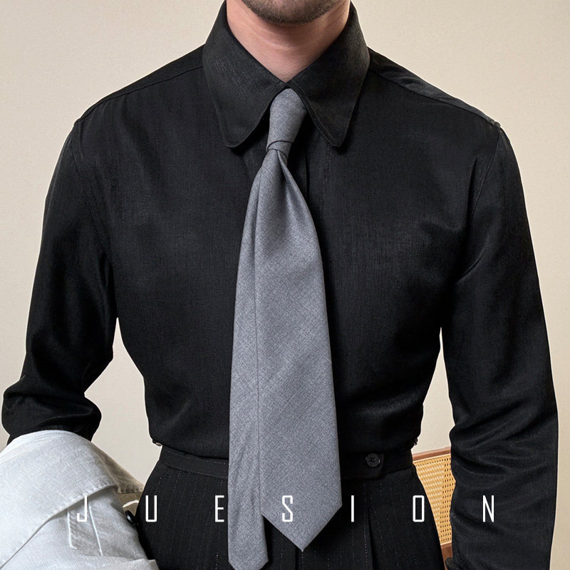 意式大领子西装衬衫男士长袖潮流修身帅气绅士休闲商务衬衣男正装