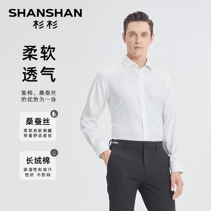 SHANSHAN杉杉男士衬衫长袖白色西装衬衫男条纹免烫2025春秋季新款