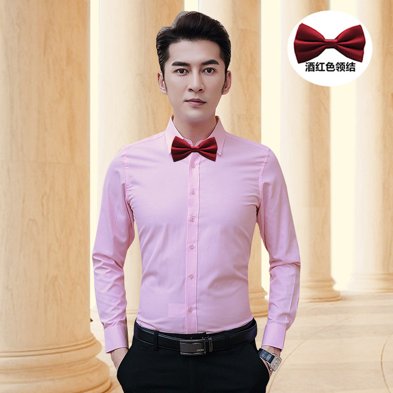 粉色结婚西装衬衫男长袖夏季薄款纯色上衣新郎伴郎团婚礼衬衣正装