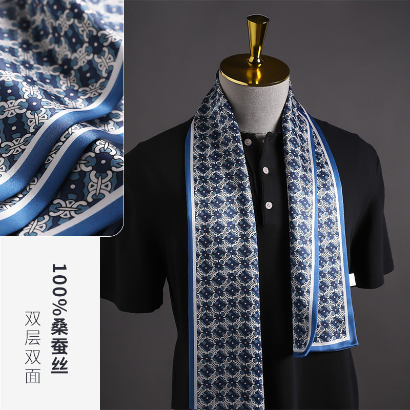 丝巾男士长条男式真丝围巾秋冬季杭州丝绸西装衬衫男款西服小围脖