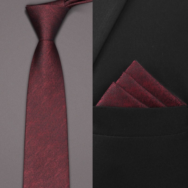 韩版结婚领带男酒红色新郎婚礼西装衬衫男士正装高级感手打细窄款