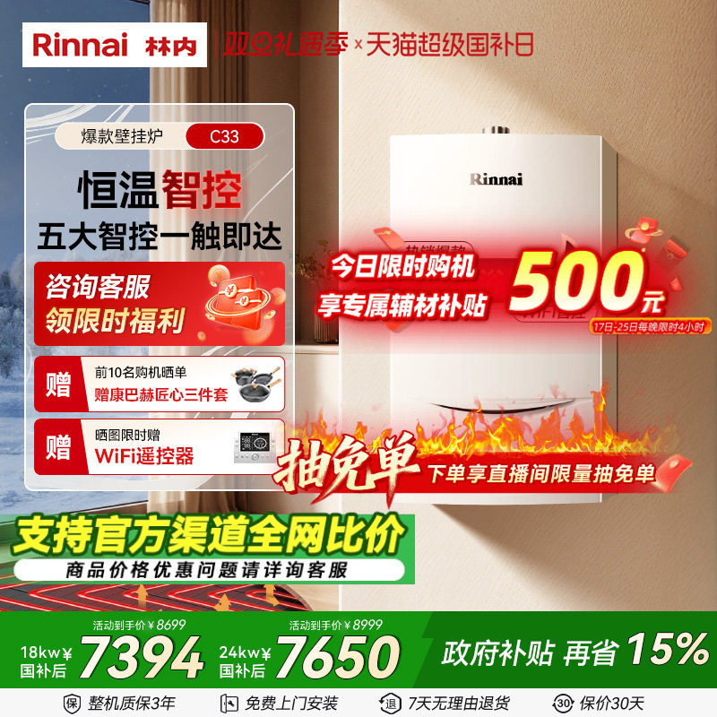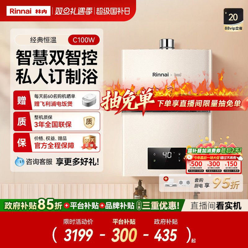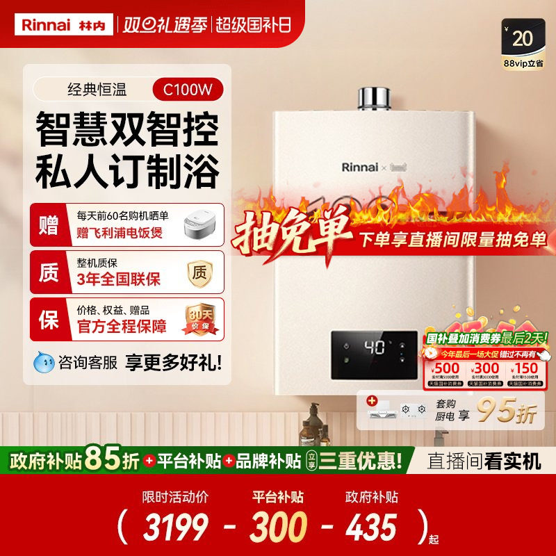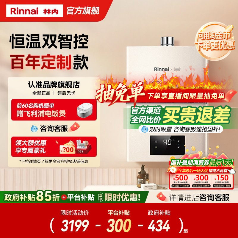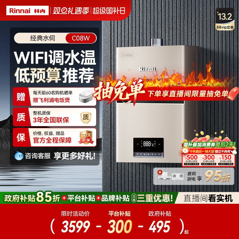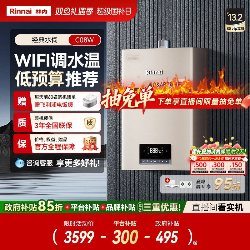 [爆款水伺服]林内燃气热水器家用恒温天然气智能洗澡13升16升C08W