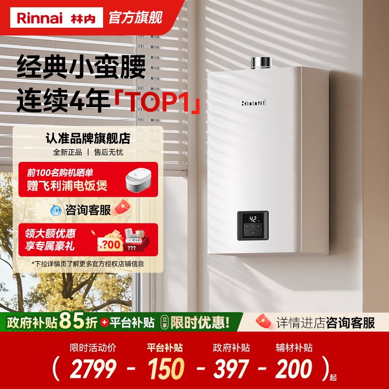 【小蛮腰】林内燃气热水器家用恒温天然气洗澡小尺寸13/16升
