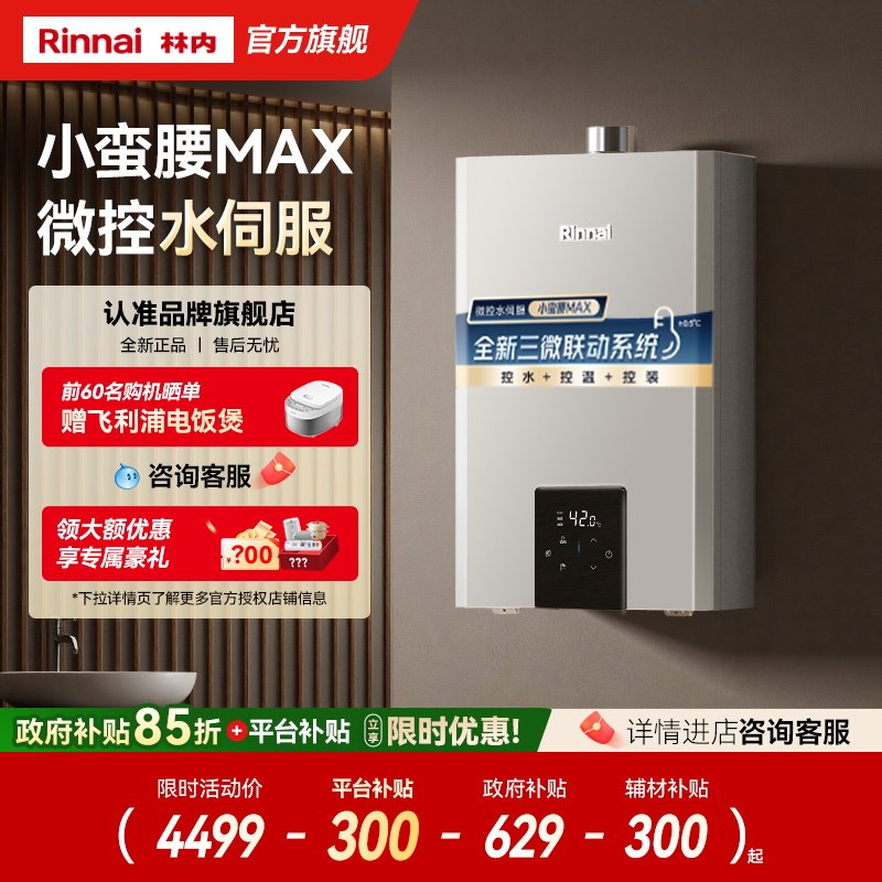 [小蛮腰MAX水伺服]林内燃气热水器家用恒温天然气官方13/16升GC62