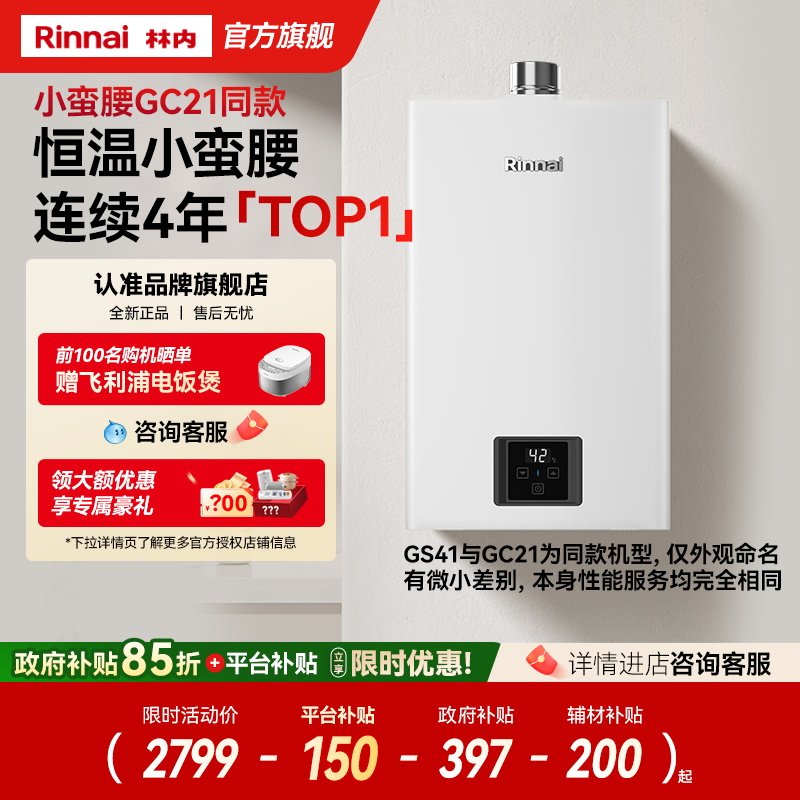 [小蛮腰恒温] 林内燃气热水器GS41 家用天然气13升16升GC21同款
