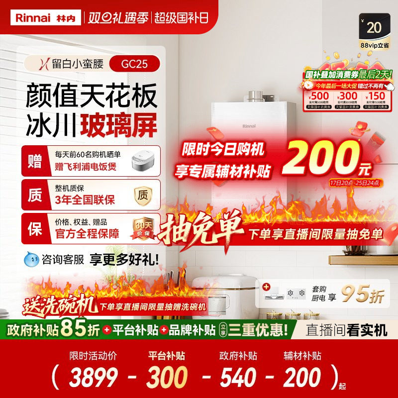 【留白】林内燃气热水器玻璃面板家用恒温天然气洗澡官方GC25